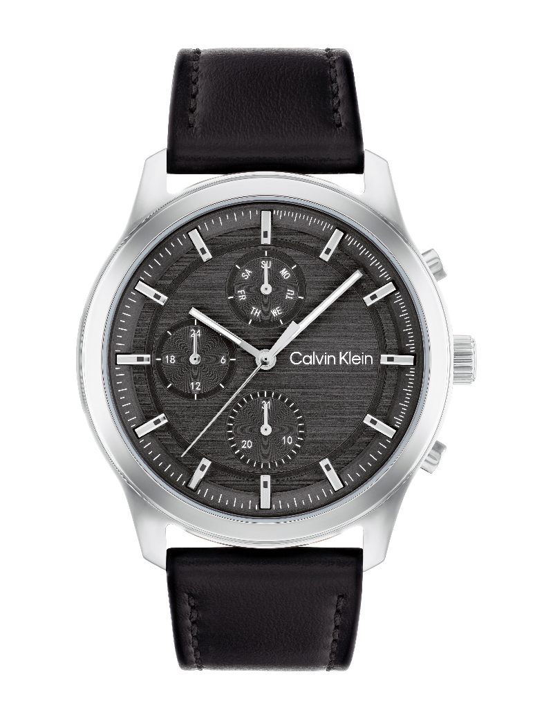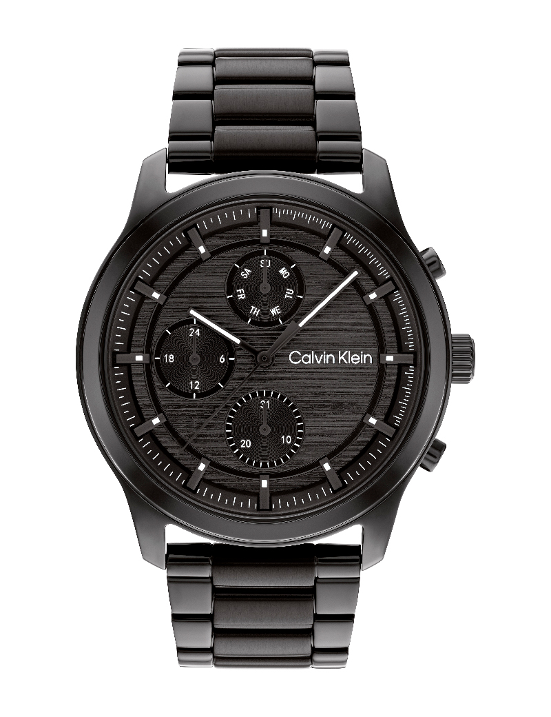 Dette ur fra Calvin Klein, kaldet ‘Ambition’, er en sand repræsentation af mærkets strømlinede æstetik og moderne designfilosofi. Med en sort skive, der fremviser en unik tekstureret detalje, og et matchende sort armbånd i rustfrit stål, udstråler dette ur en sofistikeret og kraftfuld stil. De sølvfarvede visere og timemarkører tilbyder en skarp kontrast, som sikrer let læselighed. Urets kronograf-funktioner og diskrete branding på skiven understreger dets luksuriøse og funktionelle karakter. Dette ur er et perfekt valg for den, der ønsker at kombinere elegant enkelhed med avanceret funktionalitet.