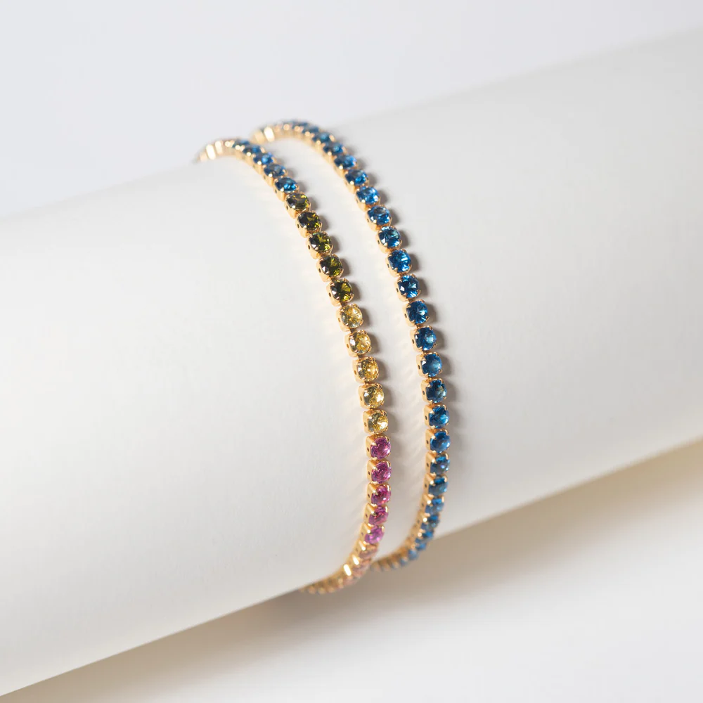 Armbånd udført i 18 karat forgyldt 925 sterlingsølv, blankpoleret overflade og håndsatte facetslebne multifarvede zirkoner.