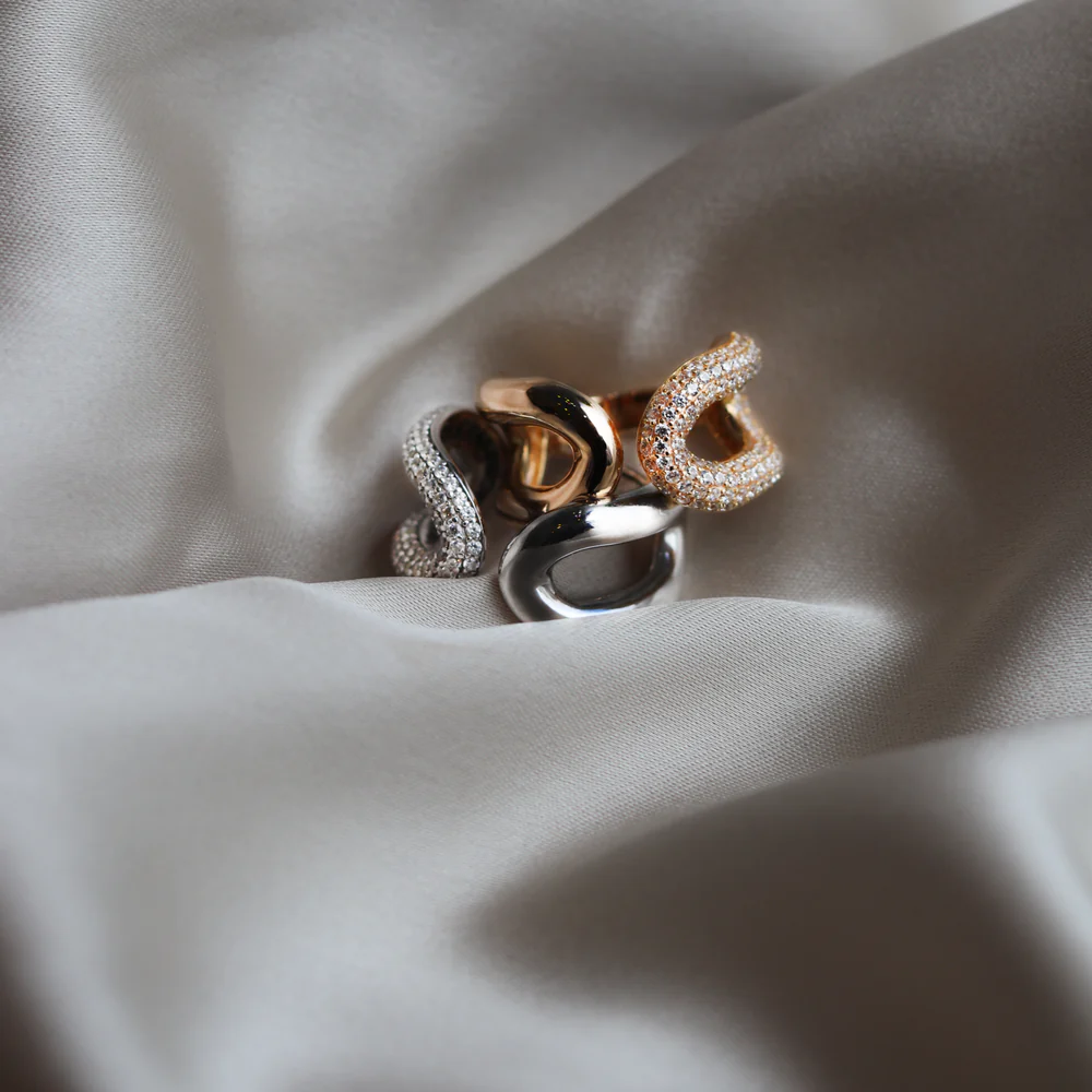Ring i sterlingsølv 925 med blankpoleret overflade og facetslebne hvide zirkoner.